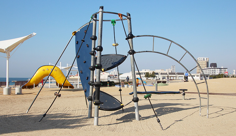 遊具・砂浜・景色がそろっていて、子どもも大人も楽しめる人気スポットです。